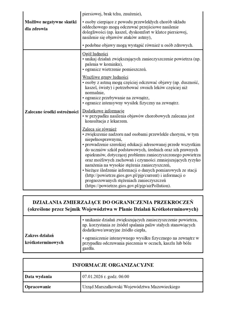 Komunikat o „Poziomie 0” wydany przez Urząd Marszałkowski Województwa Mazowieckiego to sygnał, by być czujnym i stosować się do zaleceń, aby zminimalizować ekspozycję na zanieczyszczone powietrze i zapobiec eskalacji smogu.