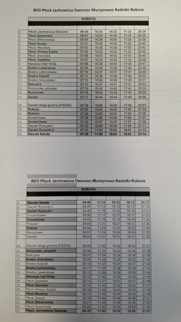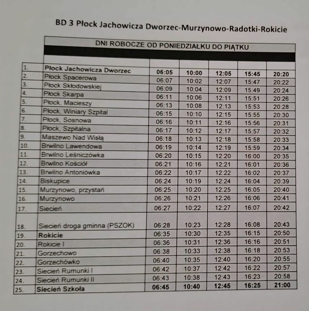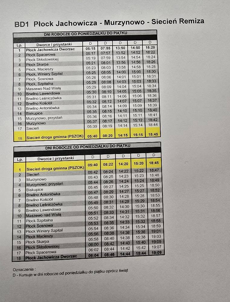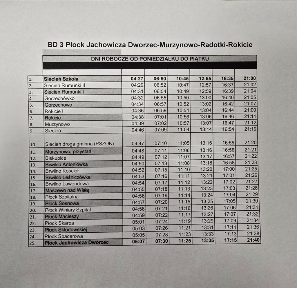 Informujemy, iż w dniu 07.01.2026 r. ponownie zamykany jest odcinek drogi w miejscowości Siecień, w związku z pracami drogowymi na drodze wojewódzkiej nr 555. Od dnia 07.01.2026 r. ponownie obowiązuje rozkład jazdy wskazany poniżej.